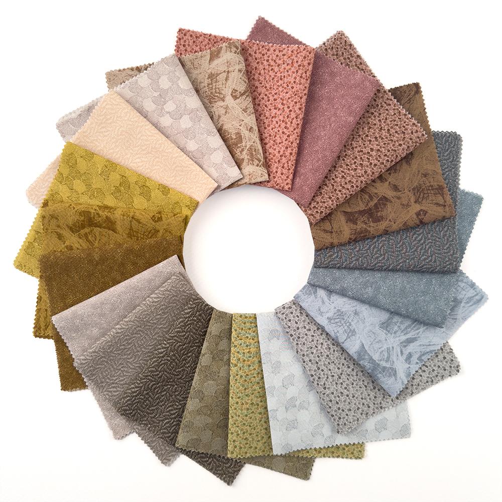 A nature‑inspired blender collection featuring rich, organic tones and subtle texture that will give you a calm, spa-like color palette. Perfect for grounding quilts, enhancing backgrounds, and coordinating beautifully with earthy or outdoor‑themed prints. The Woodland 10" Squares collection includes 42 pieces.