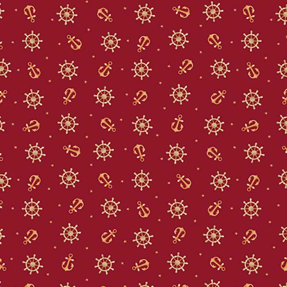 Benartex Fabrics - Sail Away by Andi Metz - Anchors Away - Red - Yardage