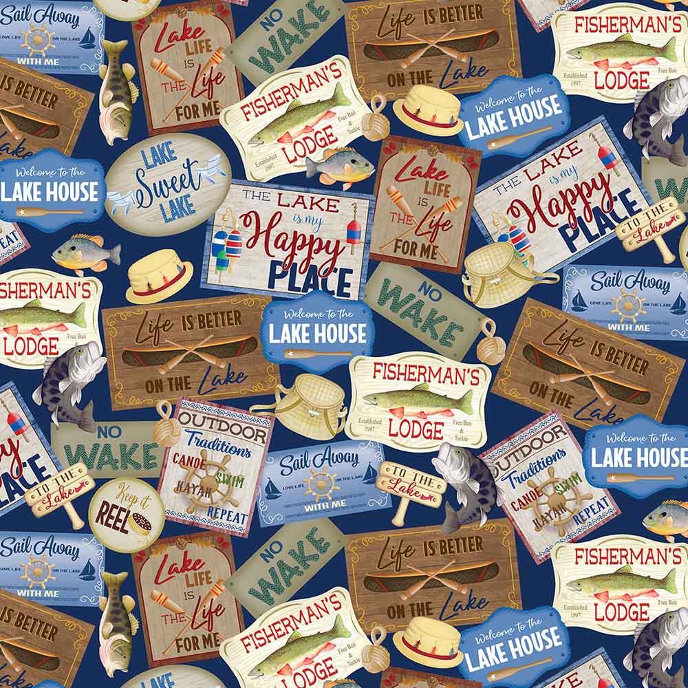 Benartex Fabrics - Sail Away by Andi Metz - Lake House Signs - Navy - Yardage