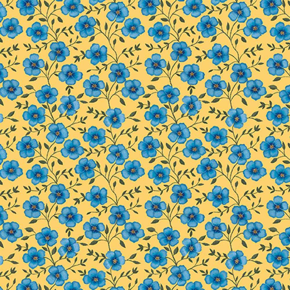 Benartex Fabrics - Wildflower Honey By Dianna Swartz - Blue Flowers - Yellow - Yardage