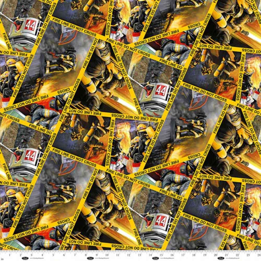 Blank Quilting - Fire Alarm - Paul Walsh - Firefighter with Hose - Black - Yardage