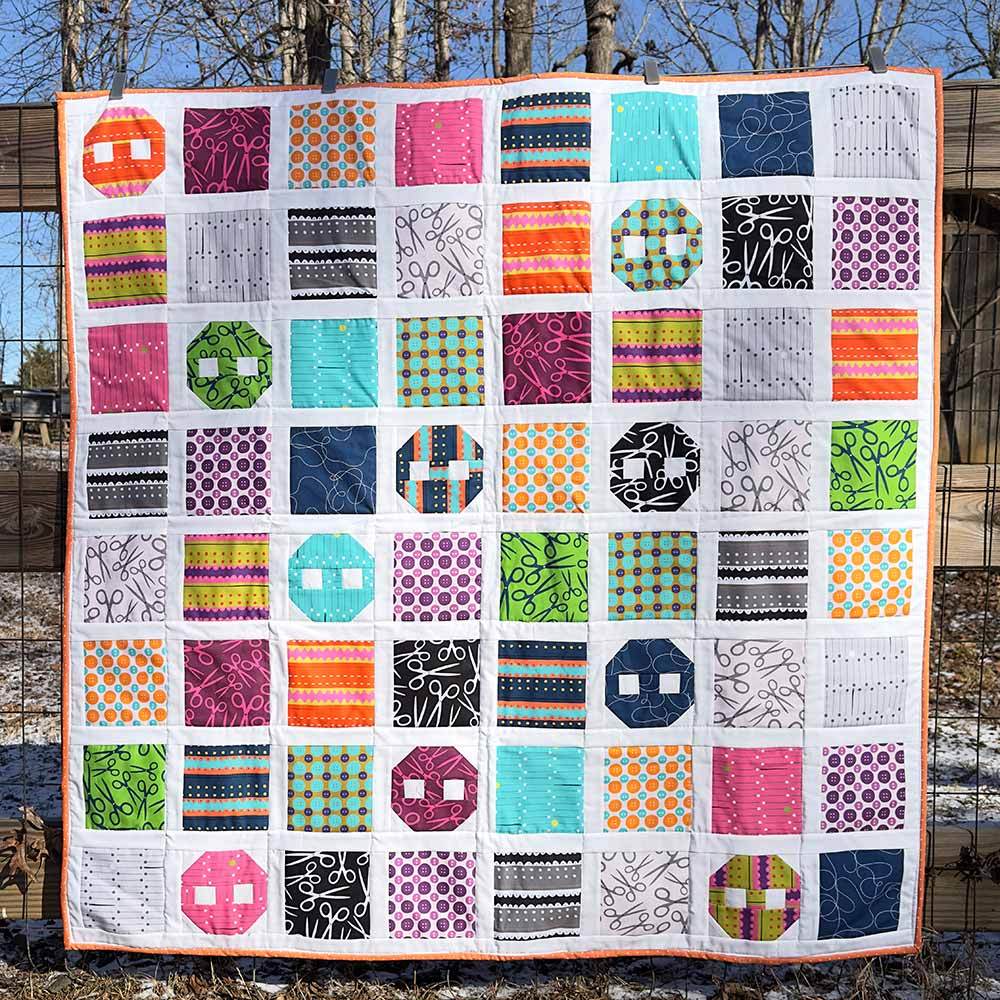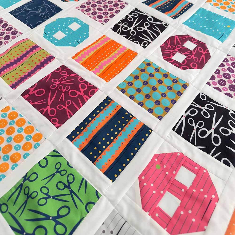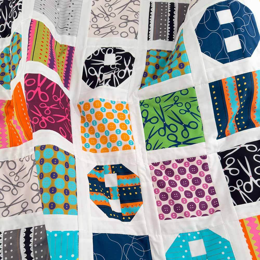 This design uses simple piecing to basic patchwork for an absolutely adorable baby quilt! The Cute as a Button Kit includes pattern from Happy Quilting Melissa and all the fabrics needed for the top and binding from the Sew Good collection by Deborah Fisher for Windham Fabrics. Finished size is 47" x 47". Backing available separately, 2-1/2 yards x 44" wide recommended.