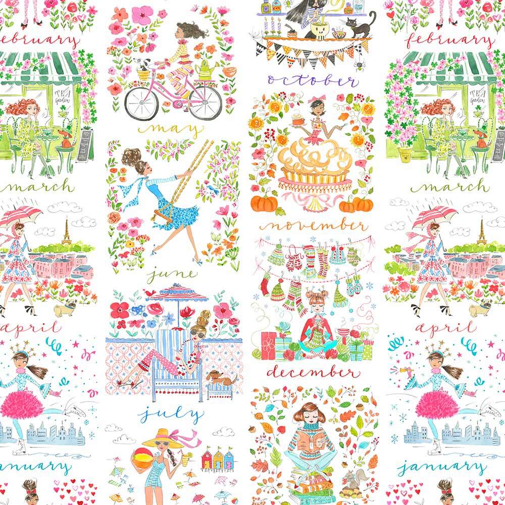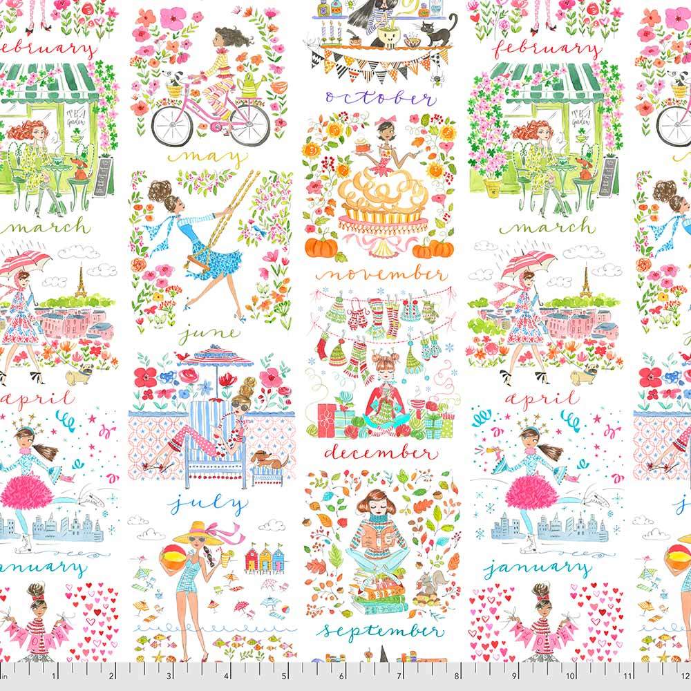 FreeSpirit Fabrics - Calendar Girls By Anne Keenan Higgins - Calendar Month - Multi - Yardage