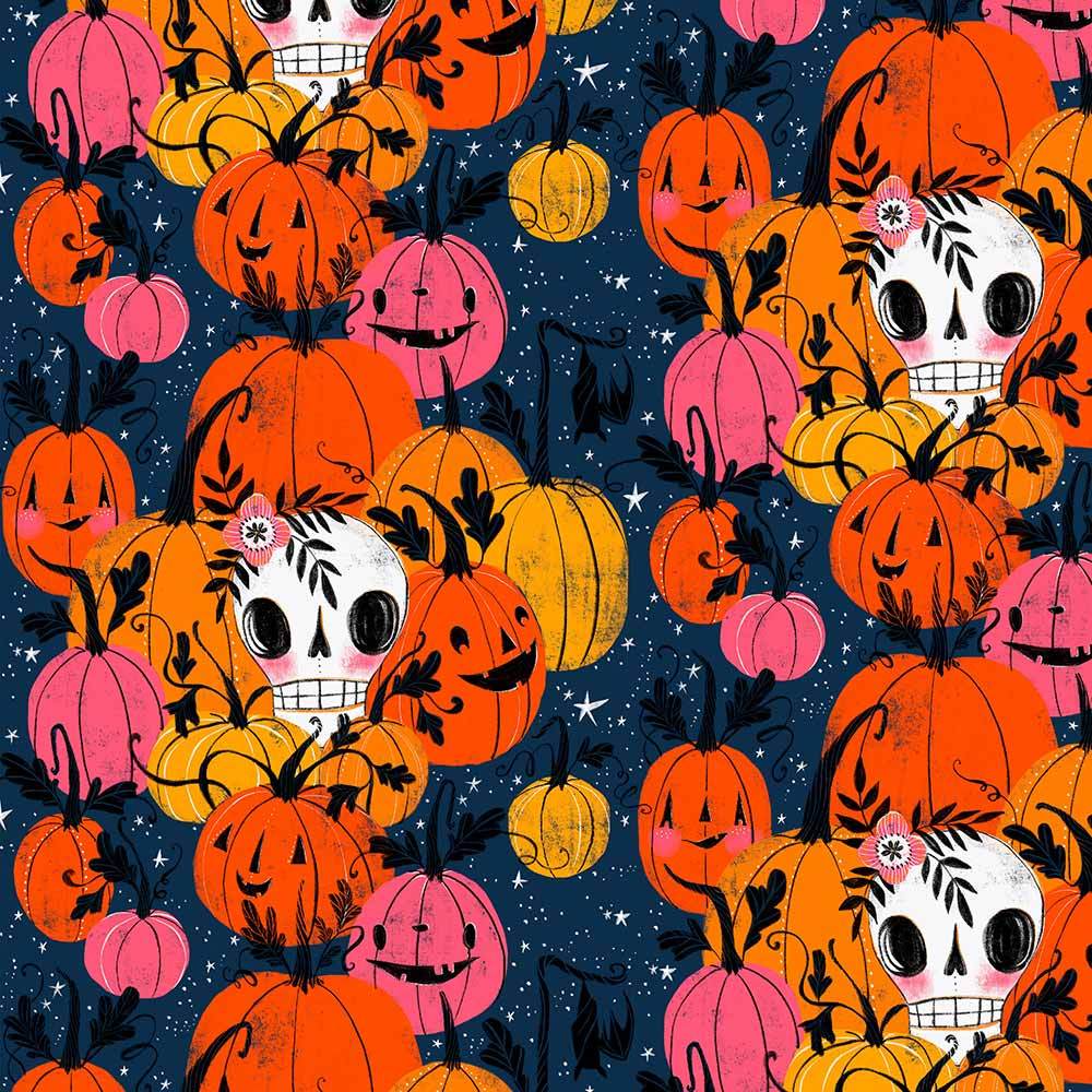 FreeSpirit Fabrics - Pretty Creepy by Cori Dantini - Pumpkin Patch - Navy - Yardage