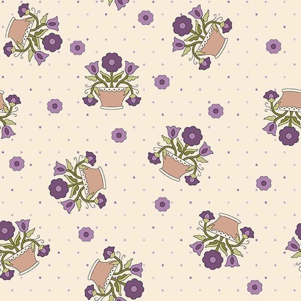 Henry Glass Fabrics - Pansy for Your Thoughts by Hannah West - Pansy Pots - Cream - Yardage