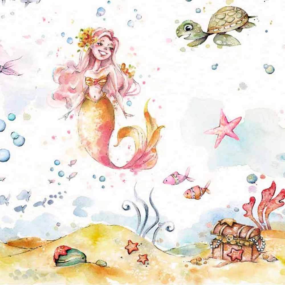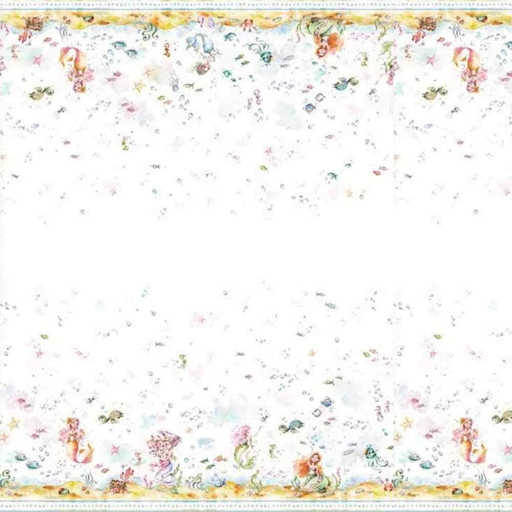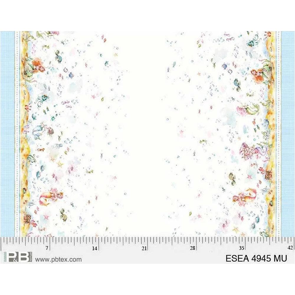 P&B Textiles - Enchanted Seas - Sillier Than Sally Designs - Blue Mermaid Double Border - White Multi - Yardage