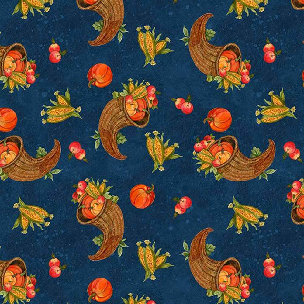 Wilmington Prints - Gnome-kin Patch by Susan Winget - Cornucopia Toss - Navy - Yardage