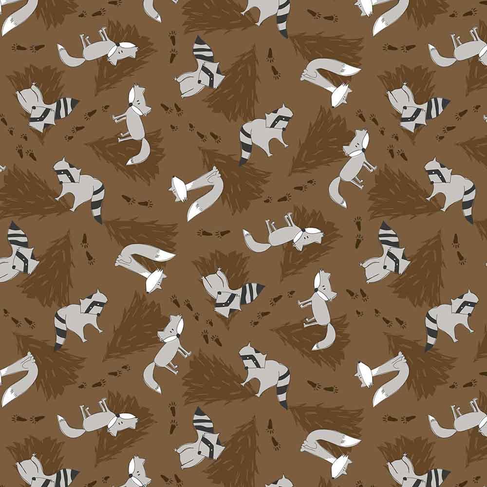 Wilmington Prints - Into The Woodlands by Deane Beesley - Racoon & Foxes Toss - Brown - Yardage