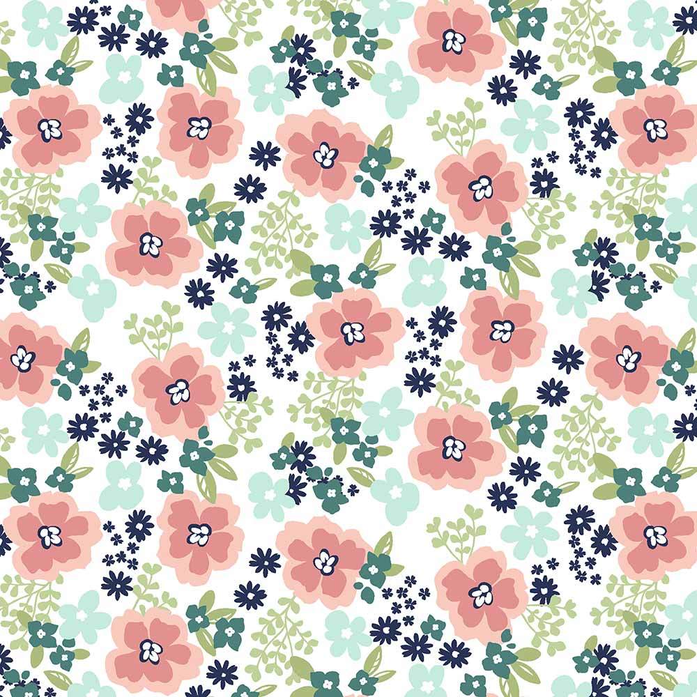 Wilmington Prints - Juliette - Angela Nickeas - Large Floral - White / Coral - Yardage