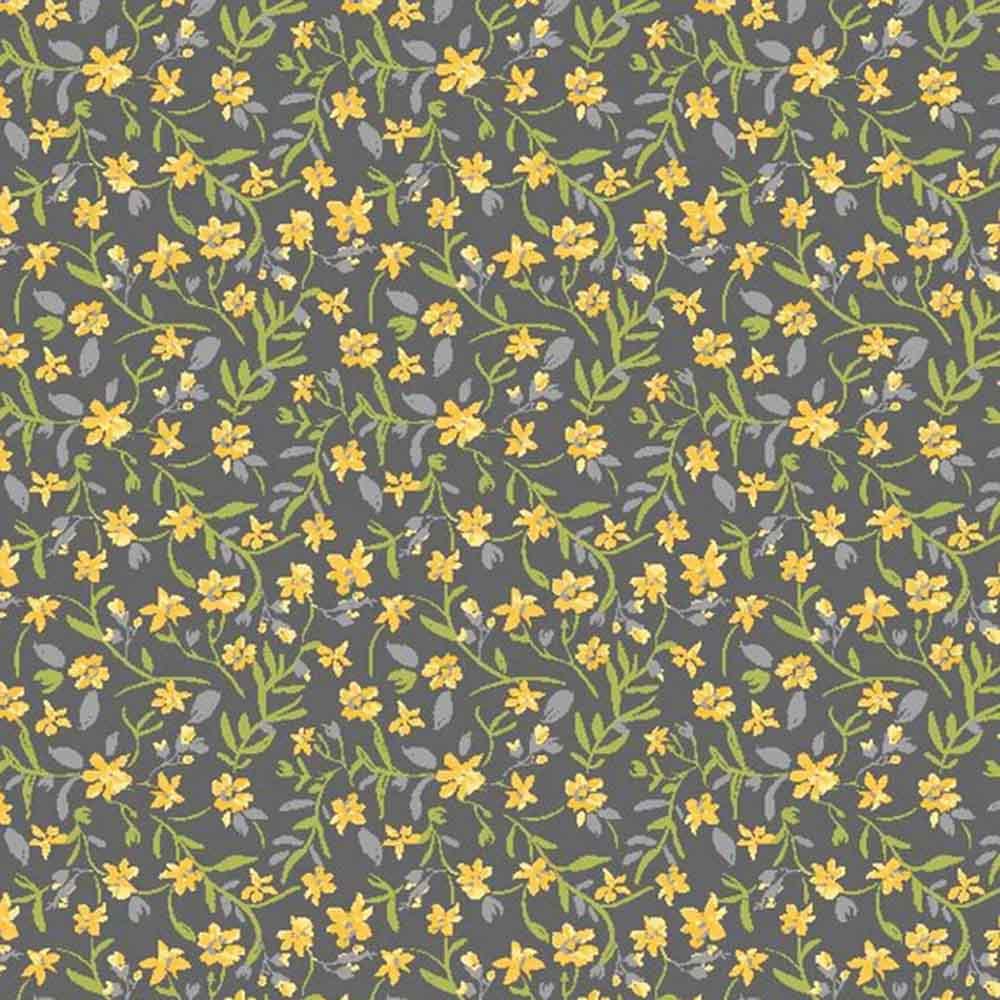 Wilmington Prints - Patch Of Sunshine by Jennifer Ellory - Medium Floral - Dark Grey - Yardage