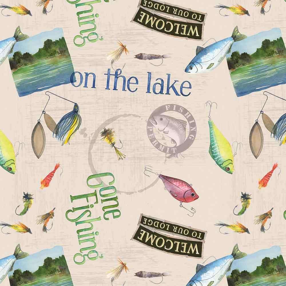 Wilmington Prints - Gone Fishing by Holly Thomas Stein - Fish & Lure Toss - Cream - Yardage