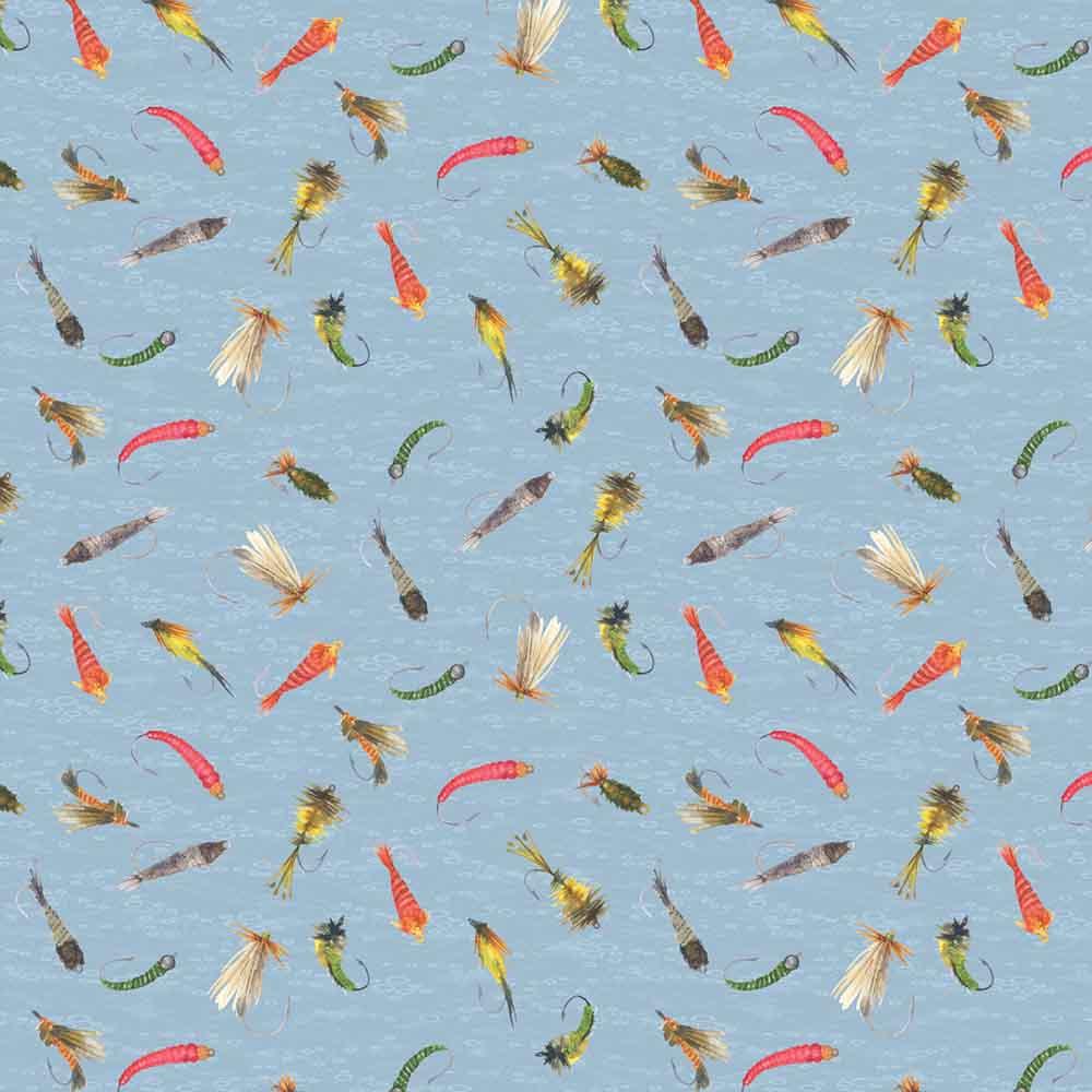 Wilmington Prints - Gone Fishing by Holly Thomas Stein - Fishing Lures All Over - Blue - Yardage