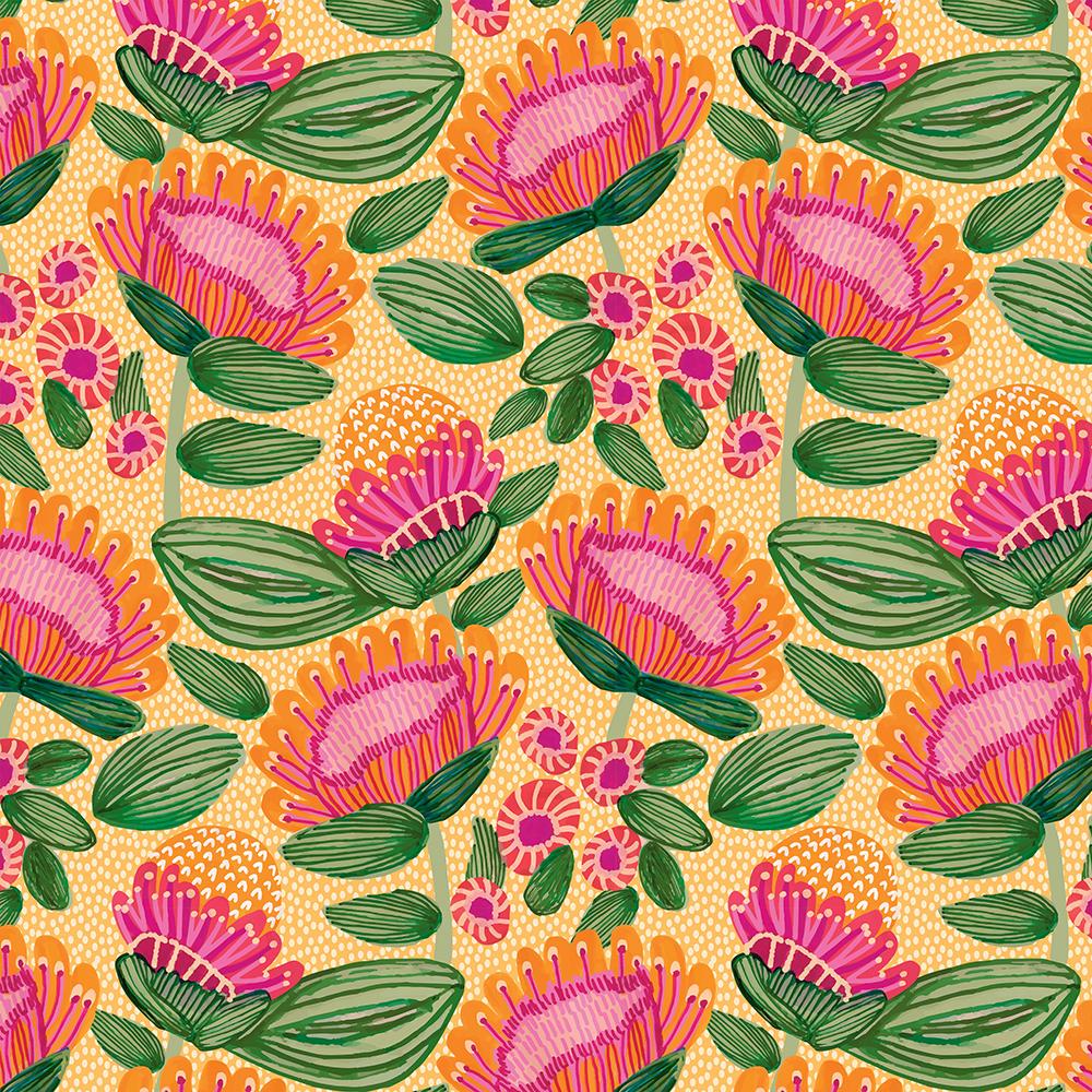 FreeSpirit Fabrics - Paradise Blooms By Kirsten Katz - Digital Print - Playful Proteas - Apricot - Yardage