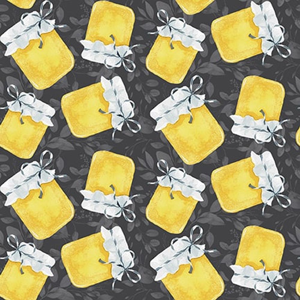 Henry Glass Fabrics - Sweet Bees by Barb Tourtillotte - Honey Jars - Charcoal - Yardage