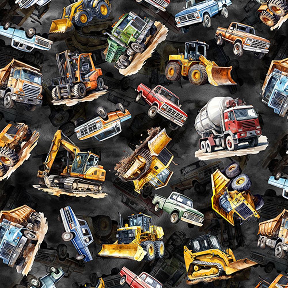 Hoffman Fabrics - Hammer Down - Work Vehicles - Black - Yardage