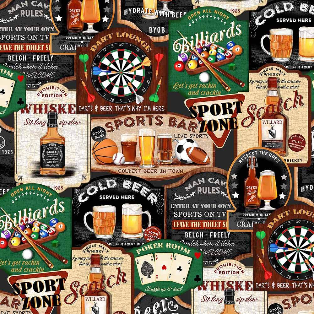 Northcott Fabrics - The Cave By Deborah Edwards - Man Cave Signs - Multi - Yardage
