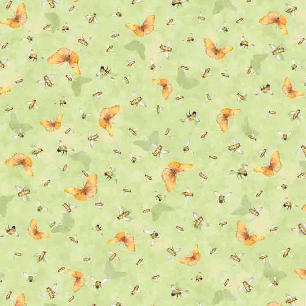 P&B Textiles - Garden Buzz By Sandy Lynam Clough - Butterflies - Green - Yardage