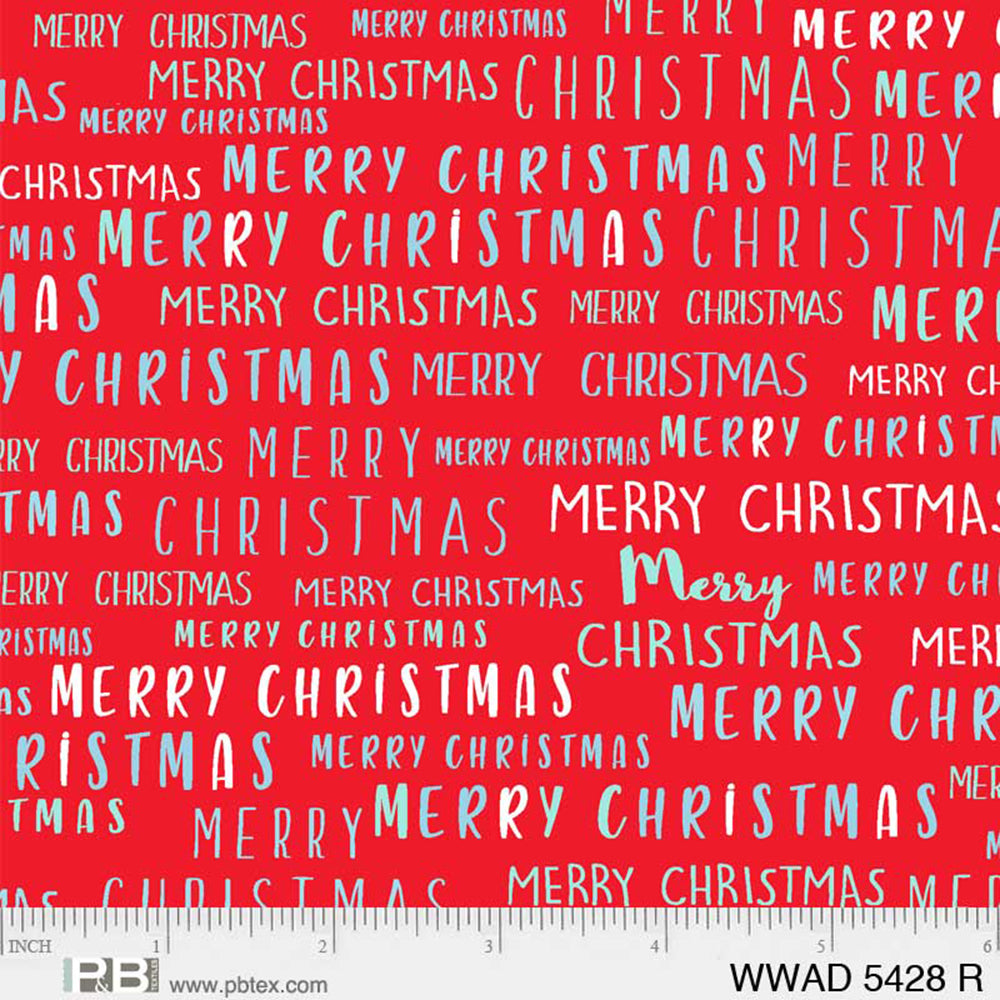 P&B Textiles - Winter Waddles - Sally Darby - Merry Christmas - Red - Yardage