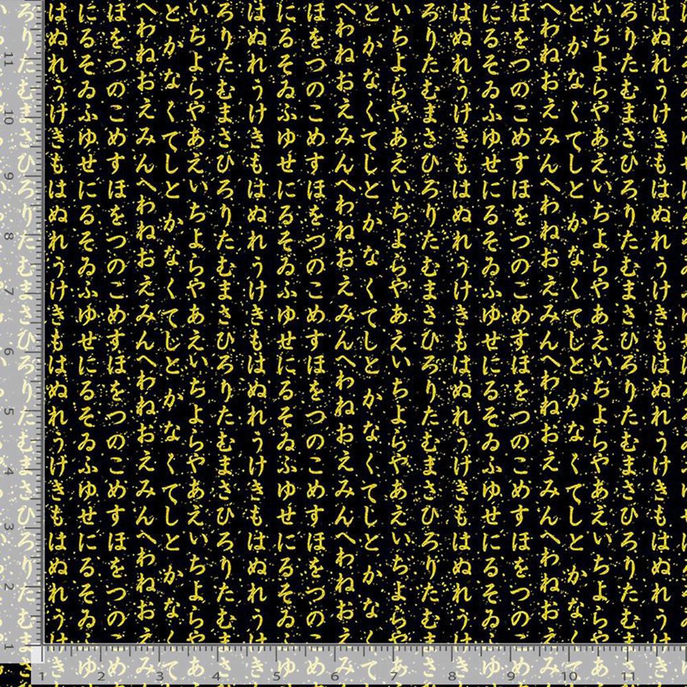 Timeless Treasures - Lotus Garden by Chong-A Hwang - Metallic - Japanese Hiragana Writing - Black - Yardage