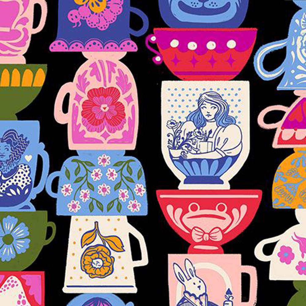 Ruby Star Society - Hello Alice by Sarah Watts - Tea Party - Black - Yardage
