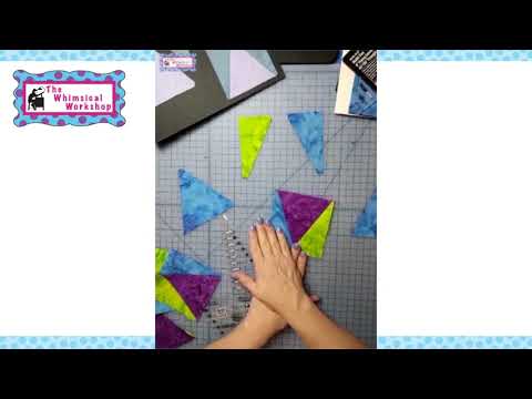 The Multi-Size 2 Peaks in 1 Triangle ruler combines the angles you need to create triangle in a square blocks which requires a two to one ratio. The unique keyhole cut-out allows you to rotary cut both angles with one tool. Cut the tall, center triangle from strips measuring 1-1/2 inch – 6-1/2 inch with no waste. The markings on the ruler show the finished size as well as the strip width required. Cut the side triangles with the other triangle. Again, the markings on the ruler show the finished size as well as the strip width so you don’t have to do the math.