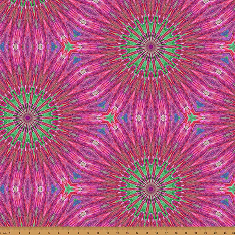 Vibrant kaleidoscope bursts in pink are featured in the Bubblelicious digital 108" wide by Candy Quilt Designs for Hoffman California Fabrics. Precut at 108" x 108" - our exclusive 3 yard back pack is a great value.