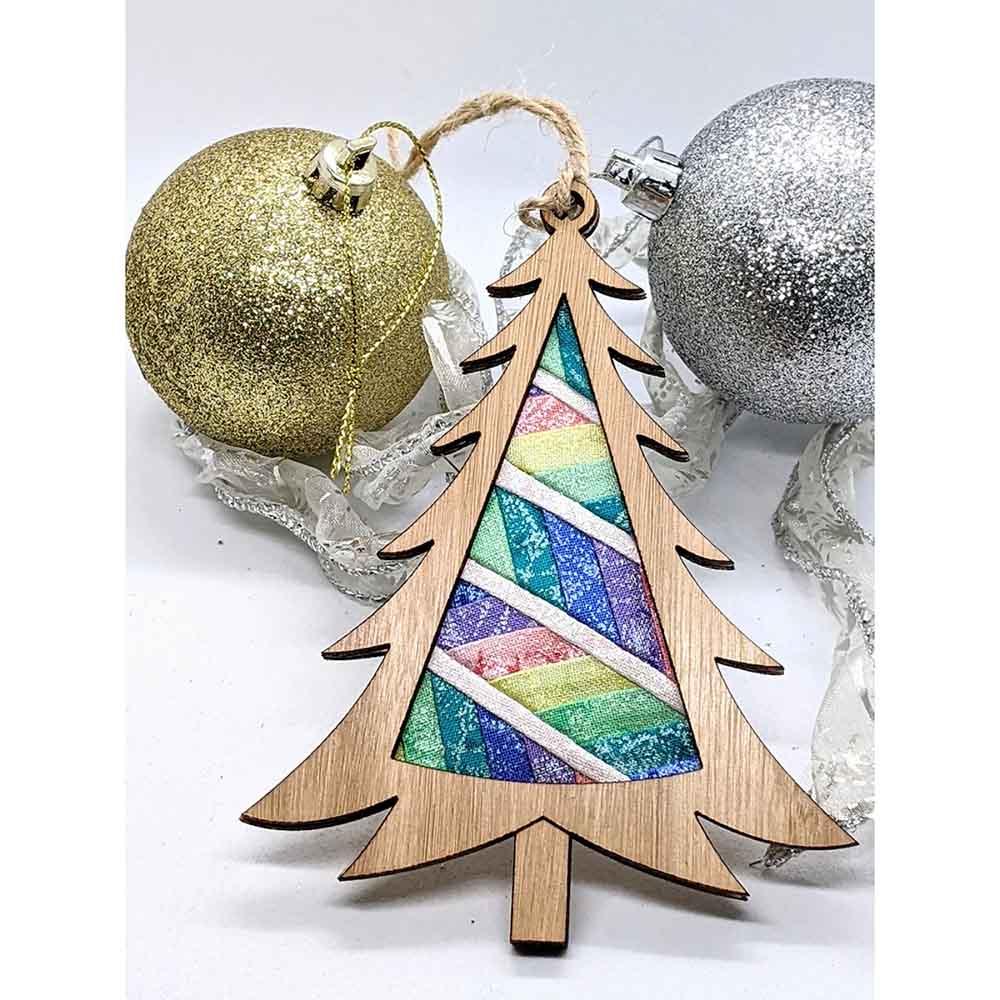 Each ornament is finished within an elegant laser-cut wooden frame, made from sustainably harvested walnut plywood, with a Christmas greeting engraved on the reverse.