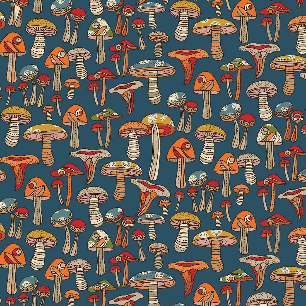 Benartex - Small Wonders by Valentina Harper - Mini Mushroom - Teal - Yardage