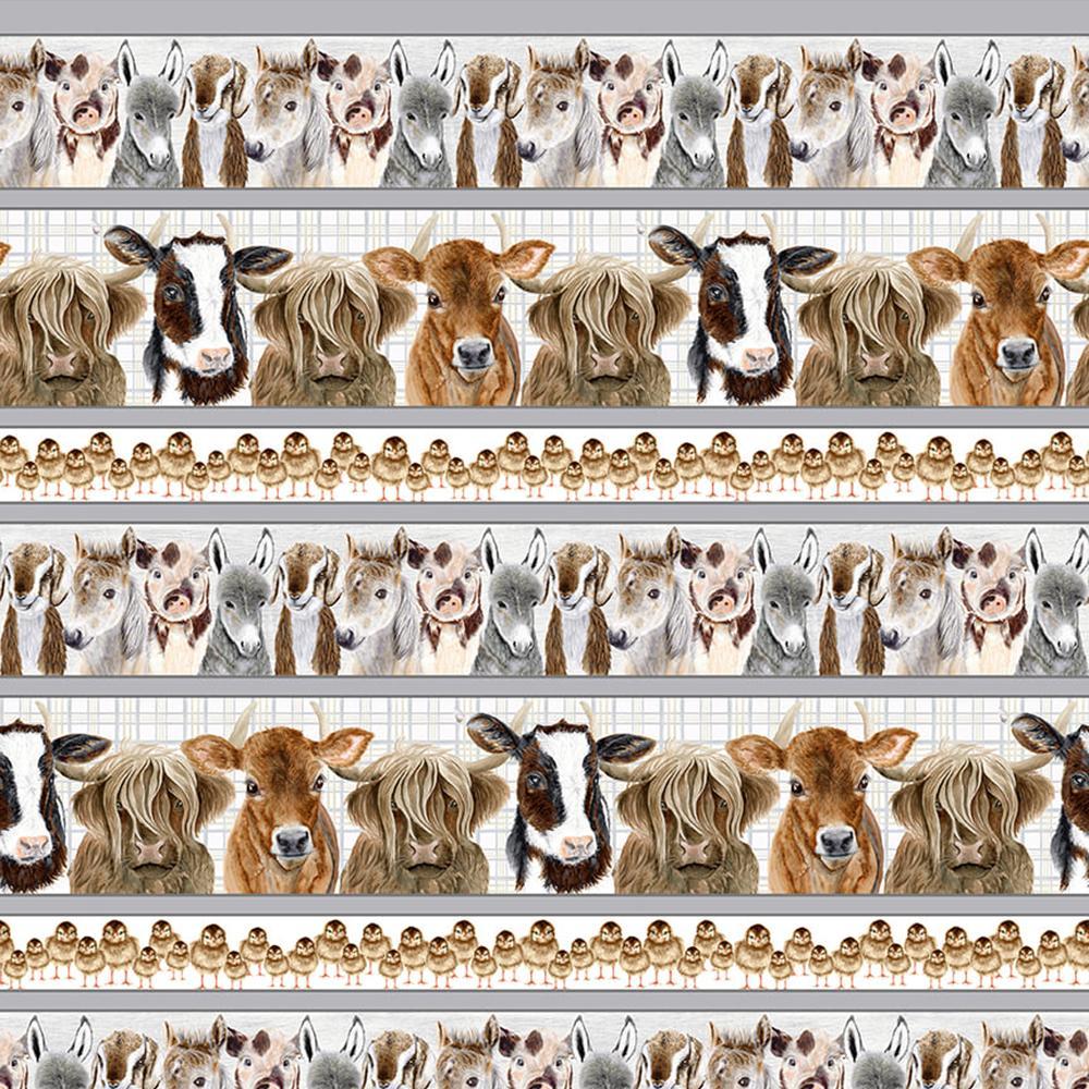 Blank Quilting - Little Seedlings Farm by Moque Lee Studio - Animal Stripe - White - Yardage