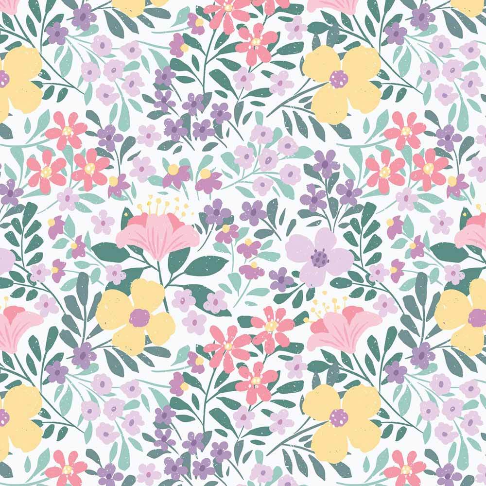 A soft floral print with just the right amount of springtime color is featured in the Allover Floral print in Multi from the Bunny Blossoms collection by Dominika Godette for Cloud9 Fabrics.