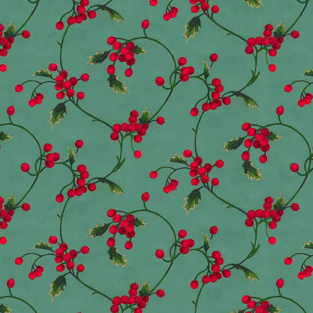 FreeSpirit Fabrics - Holly Day By Martha Negley - Berry Scroll - Green - Yardage