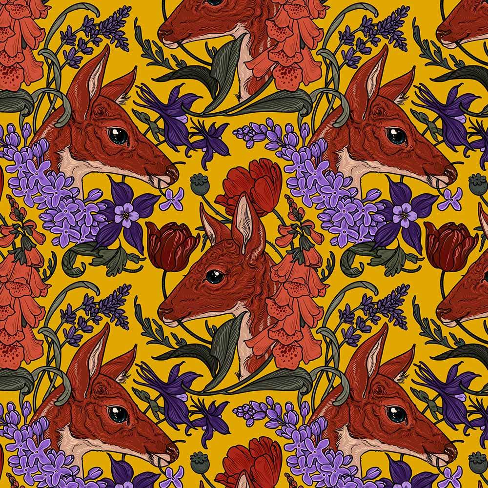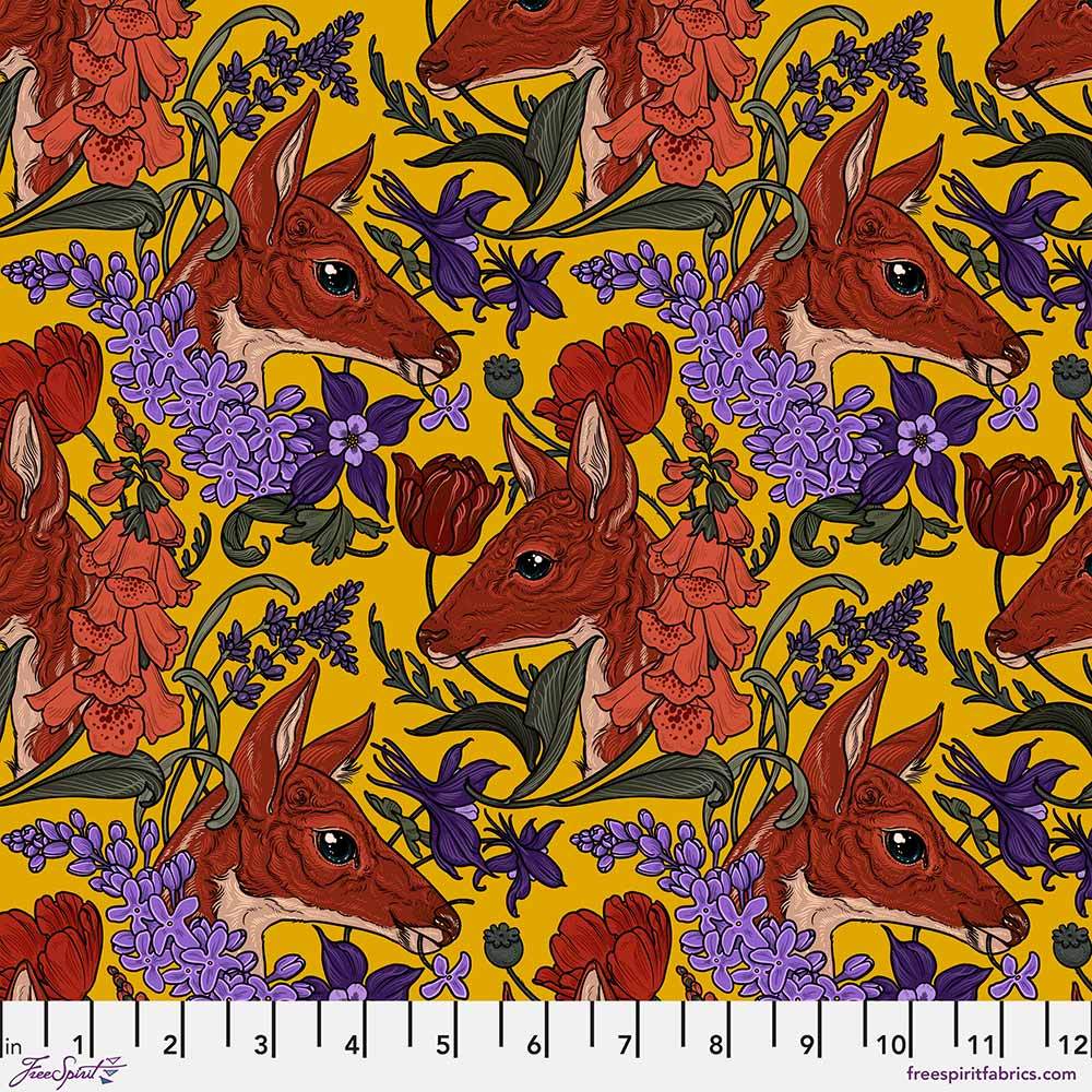 FreeSpirit - Garden Bed by Rachel Hauer - Deer - Yellow - Yardage