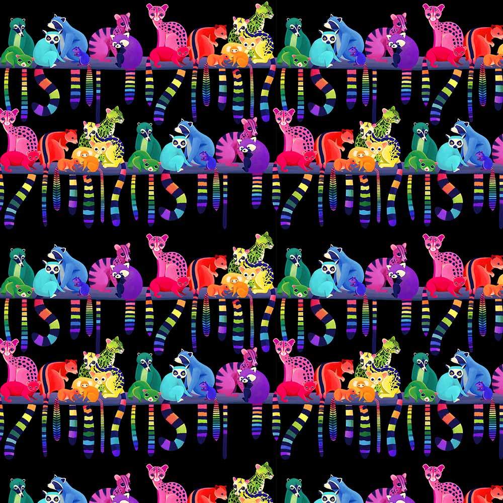 FreeSpirit - Love in the Wild by Katy Tanis of Daughter Earth - Ringtail Love Night - Black - Yardage