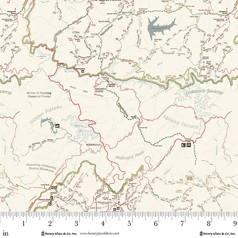 Henry Glass & Co. - Camping Pups by Robert Giordano - Trail Map - Cream - Yardage