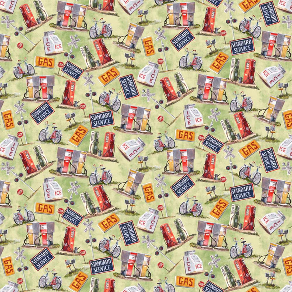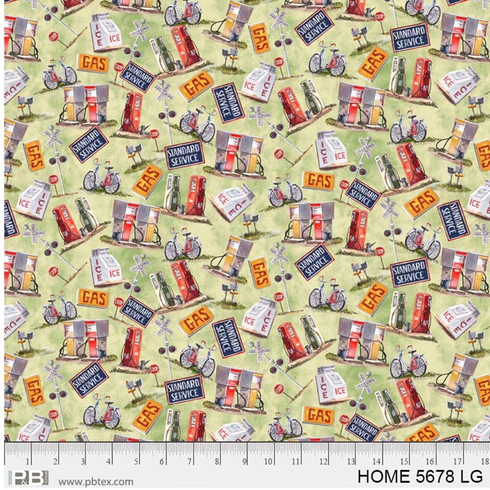 Hometown by Luke Buck - P&B Textiles - Station Icons Toss - Light Green - Yardage