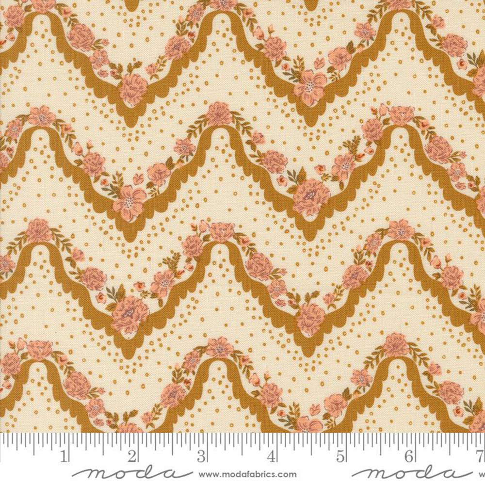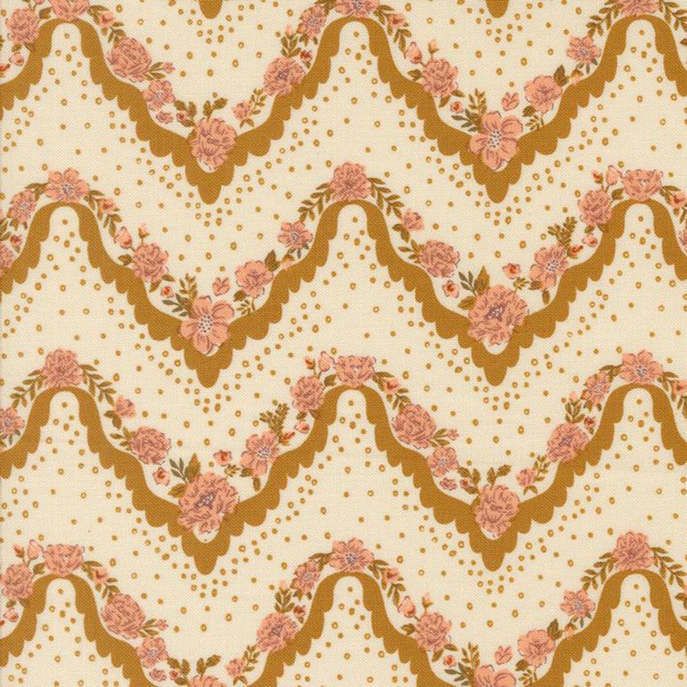 Moda Fabrics - Foraged, Found, & Hand Me Down by Stephanie Sliwinski - Fancy That Design House & Co. - Floral Chevron Stripe - Gold - Yardage
