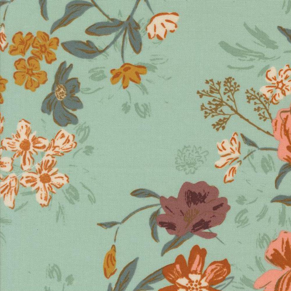 Moda Fabrics - Foraged, Found, & Hand Me Down by Stephanie Sliwinski - Fancy That Design House & Co. - Harvest Florals - Aqua - Yardage