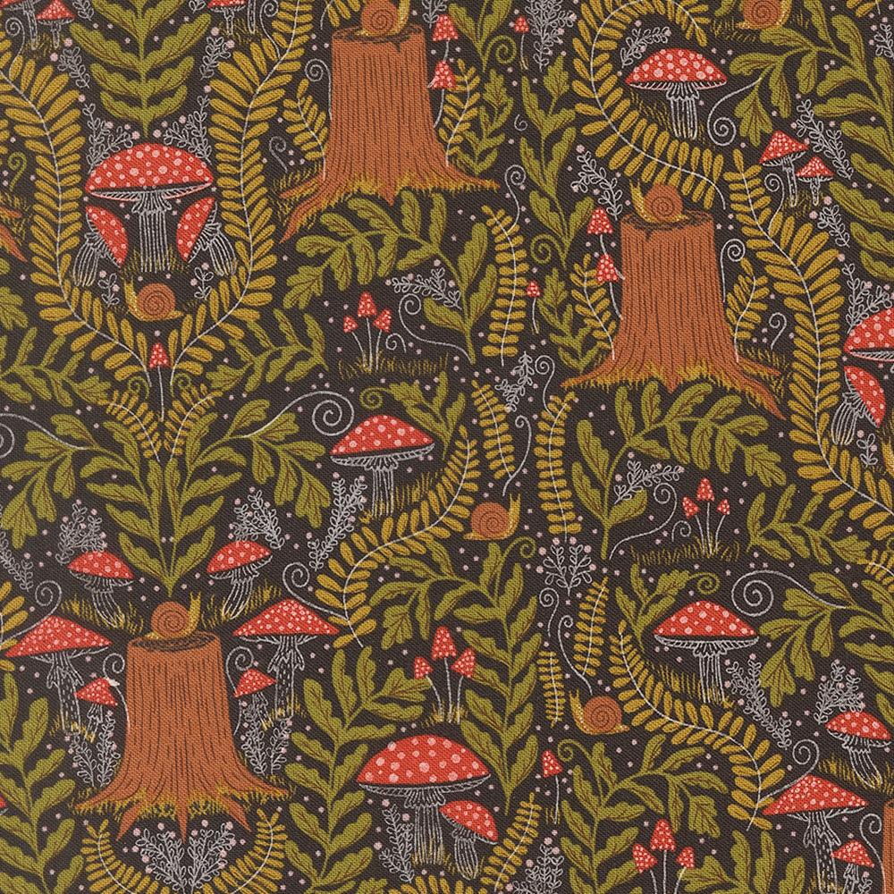 Moda Fabrics - Night Owl by Gingiber - Mushroom Landscape and Nature - Black - Yardage