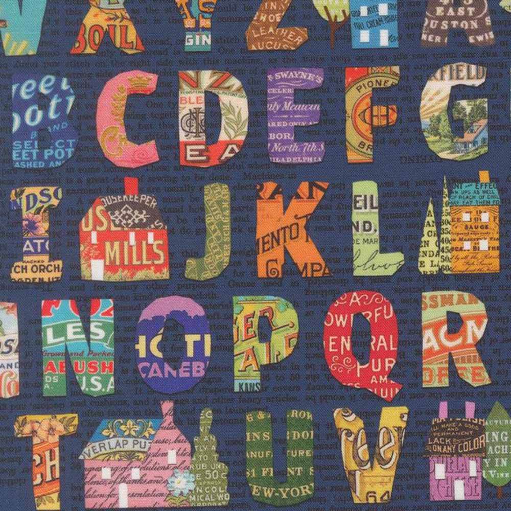 Moda Fabrics - PaperHamlet by Cathe Holden - Alaphabet Text and Words - Dark Blue - Yardage