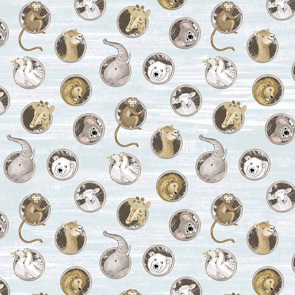 Northcott Fabrics - Two by Two by Deborah Edwards - Peeking Animal Friends - Light Blue Mist - Yardage