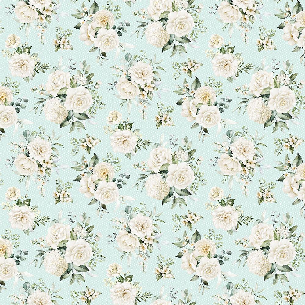 Northcott Fabrics - White Wedding by Northcott Studio - White Roses - Light Aqua - Yardage