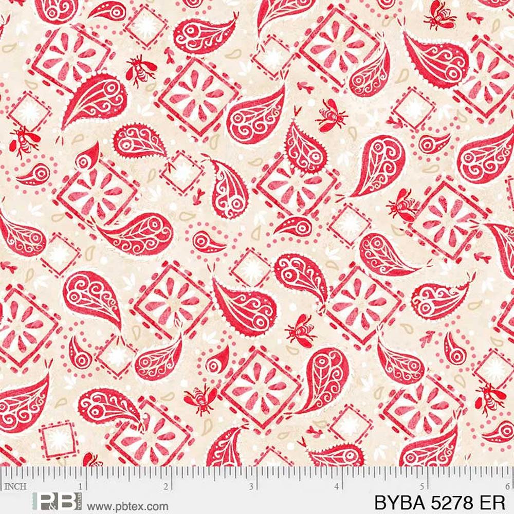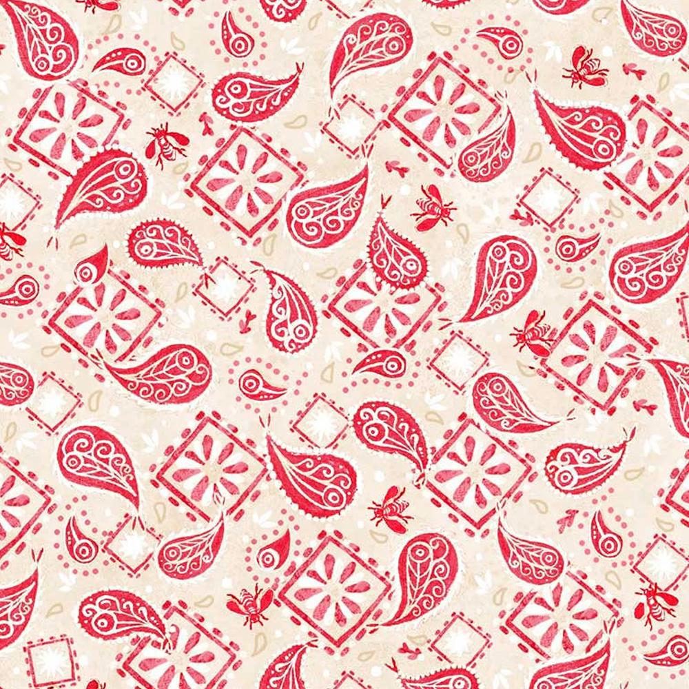 P&B Textiles - Barnyard Babies by Clint Eagar - Paisley & Squares - Red & Cream - Yardage