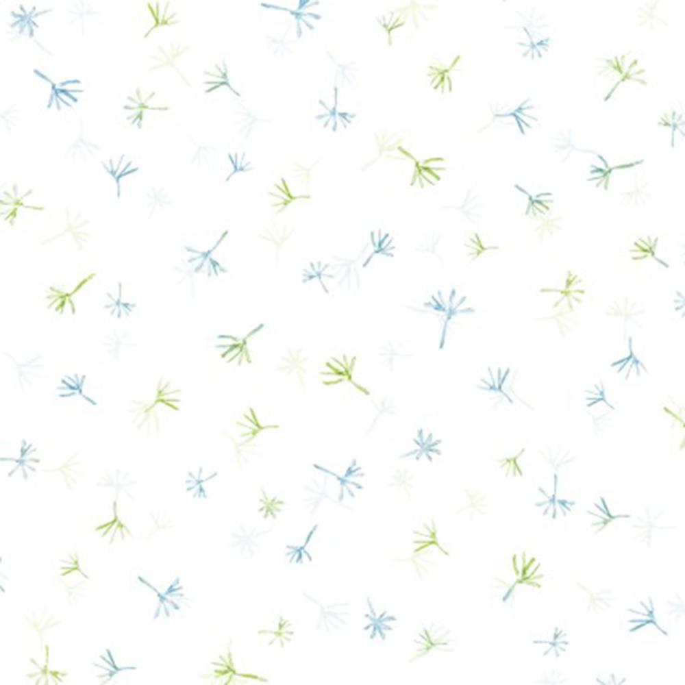 P&B Textiles - Jona's Garden by Jon Van Zyle - Tossed Dandelion - White/Blue/Green - Yardage