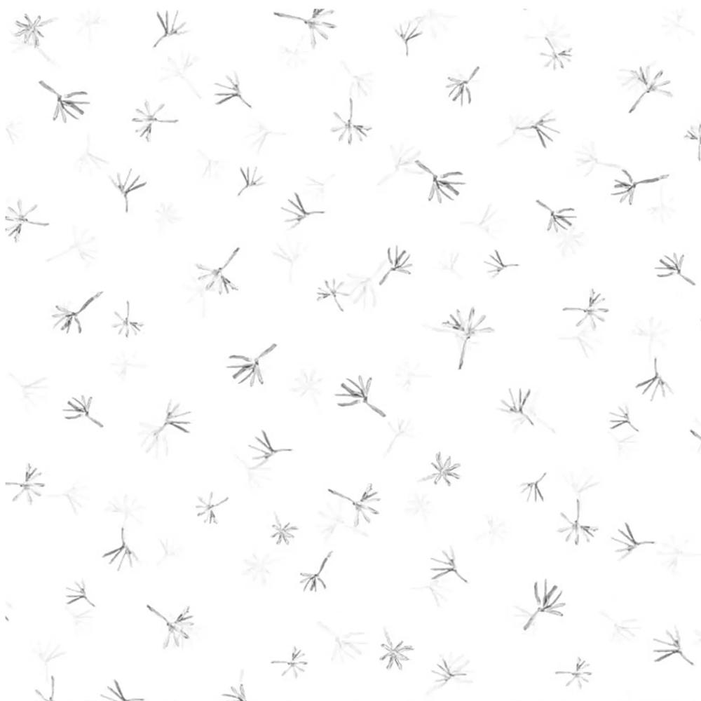 P&B Textiles - Jona's Garden by Jon Van Zyle - Tossed Dandelion - White/Silver- Yardage