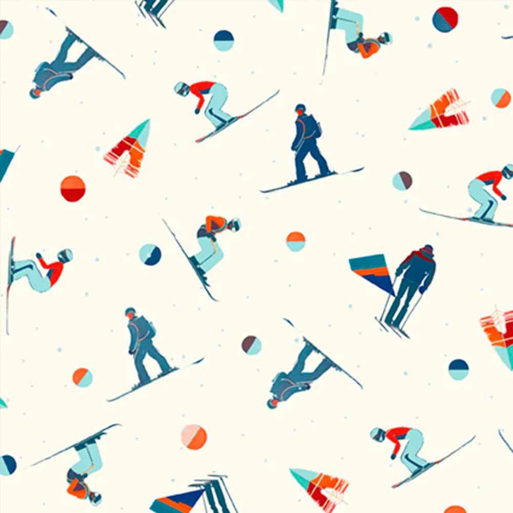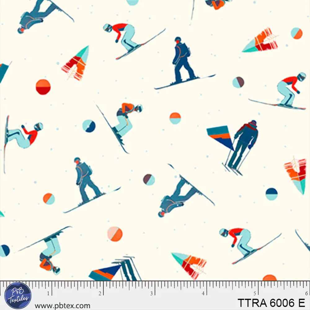 P&B Textiles - Timeless Trails by FootePrint Art - Skiers Allover - White - Yardage