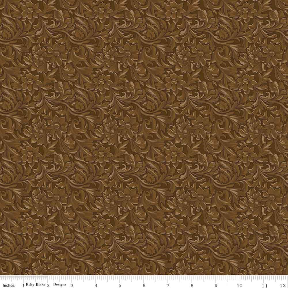 Riley Blake Designs - Cowgirl by Echo Park Paper Co. - Tone-On-Tone Floral Leather - Brown - Yardage