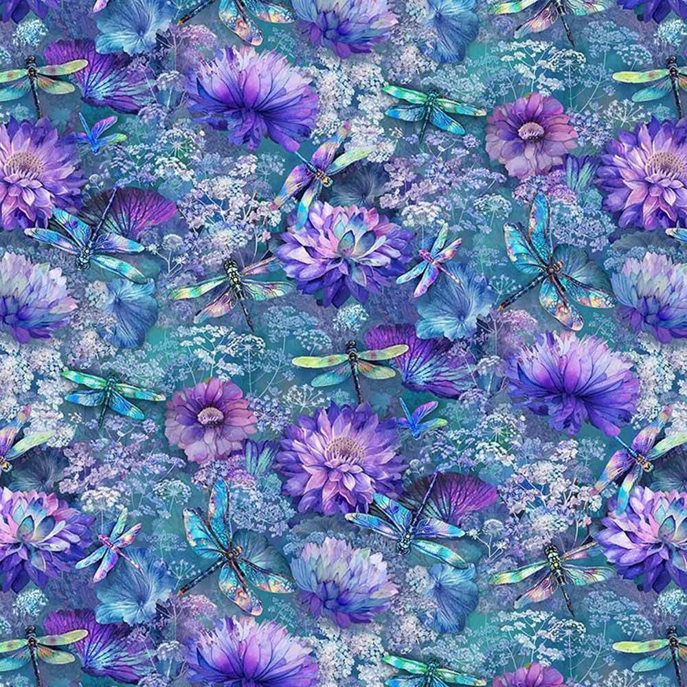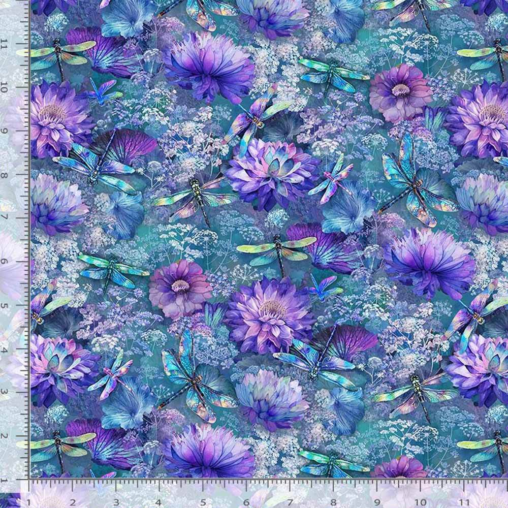 Nature's magic and beauty are featured in the Flying Dragonflies & Floral print from the In Love collection by Timeless Treasures.