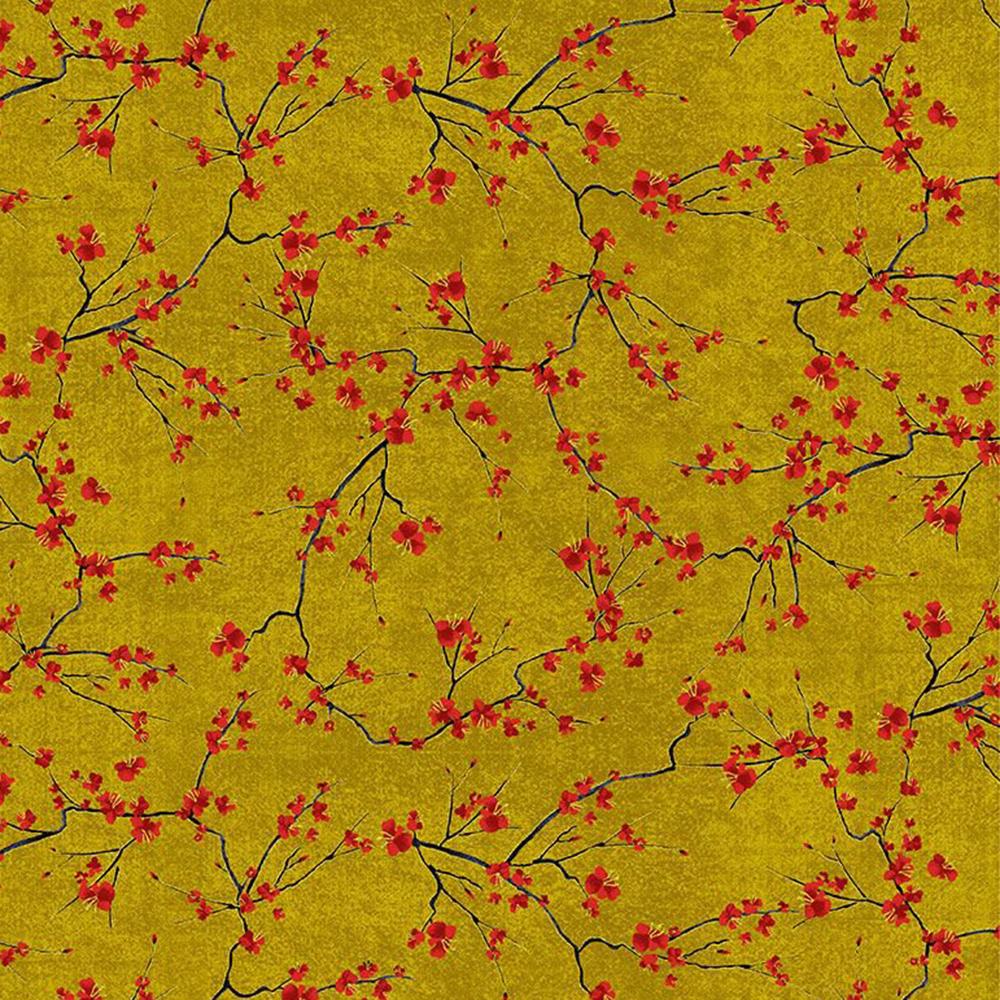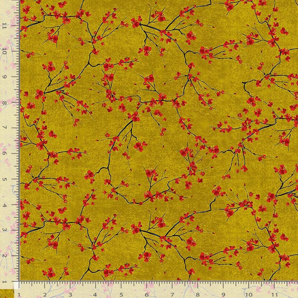 Timeless Treasures - Lotus Garden by Chong-A Hwang - Metallic - Cherry Blossoms Branches - Cream - Yardage