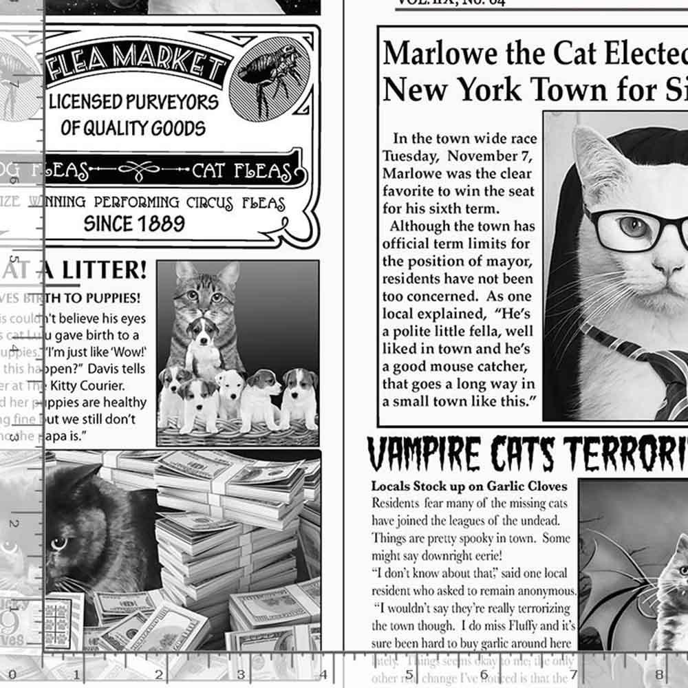 Timeless Treasures - Meow You Doing? - Newspaper - White - Yardage