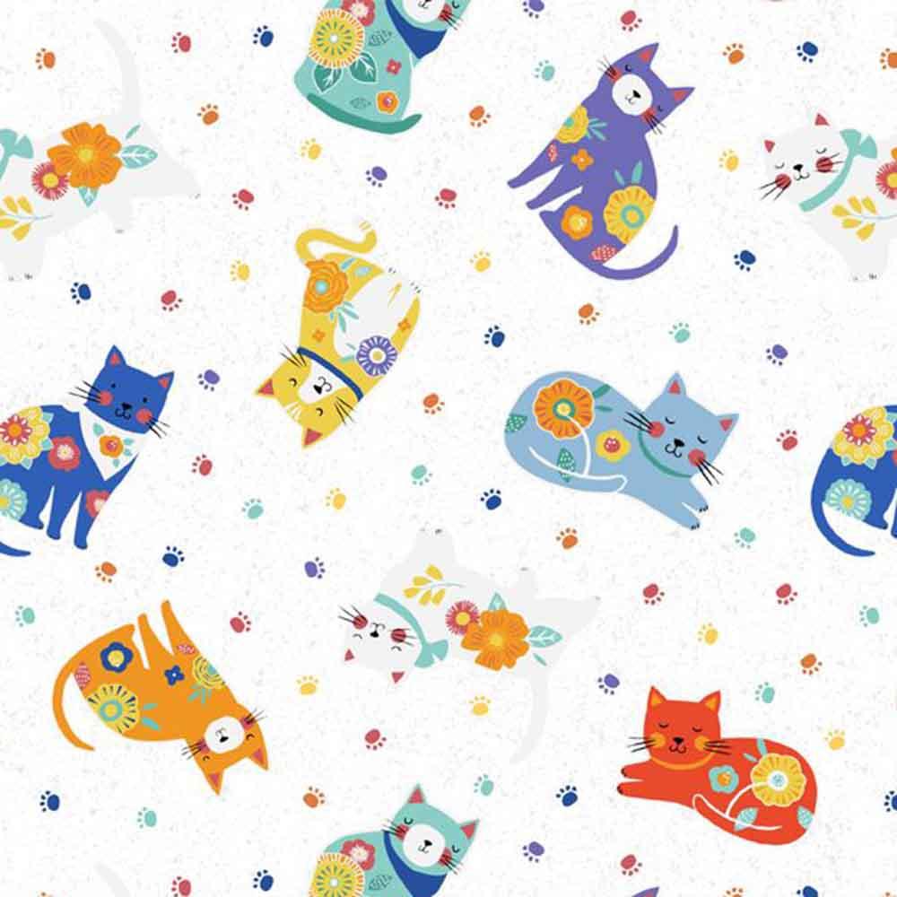 Wilmington Prints - Fe-Line Frisky by Anne Rowan - Cat Toss - White - Yardage